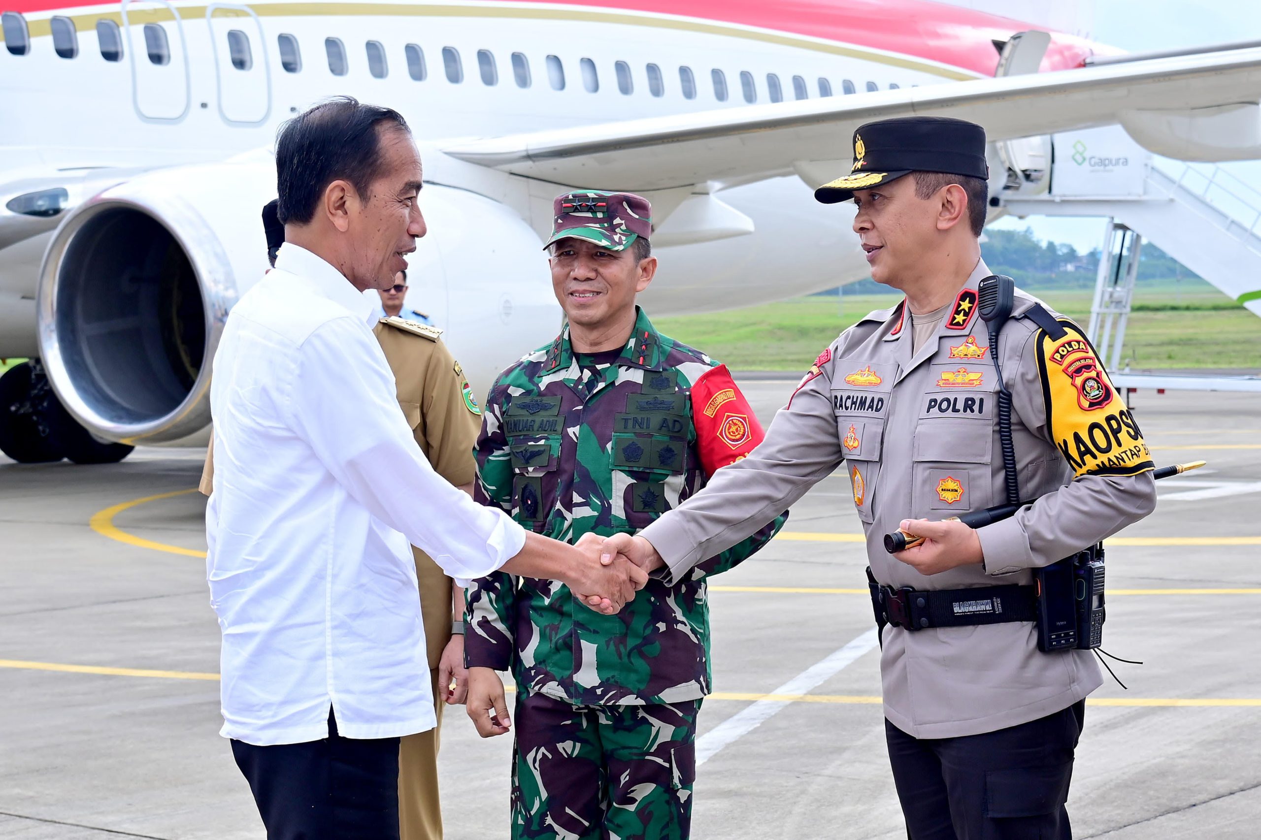 Tampak menyambut kedatangan Presiden di bandara tersebut yakni Kapolri Jenderal Listyo Sigit Prabowo, Pj. Gubernur Sumatera Selatan Agus Fatoni, Pangdam II/Sriwijaya Mayjen Yanuar Adil, dan Kapolda Sumatera Selatan Irjen Pol. A. Rachmad Wibowo,Kajati Sumsel Bpk.Dr. Yulianto, S.H, M.H, Ketua DPRD Sumsel Hj. R.A. Anita Noeringhati, SH, MH, Kolonel Laut (P) Sandy Kurniawan, Kolonel Pnb Rizaldy Efranza, S.T, M.N.S.S,.