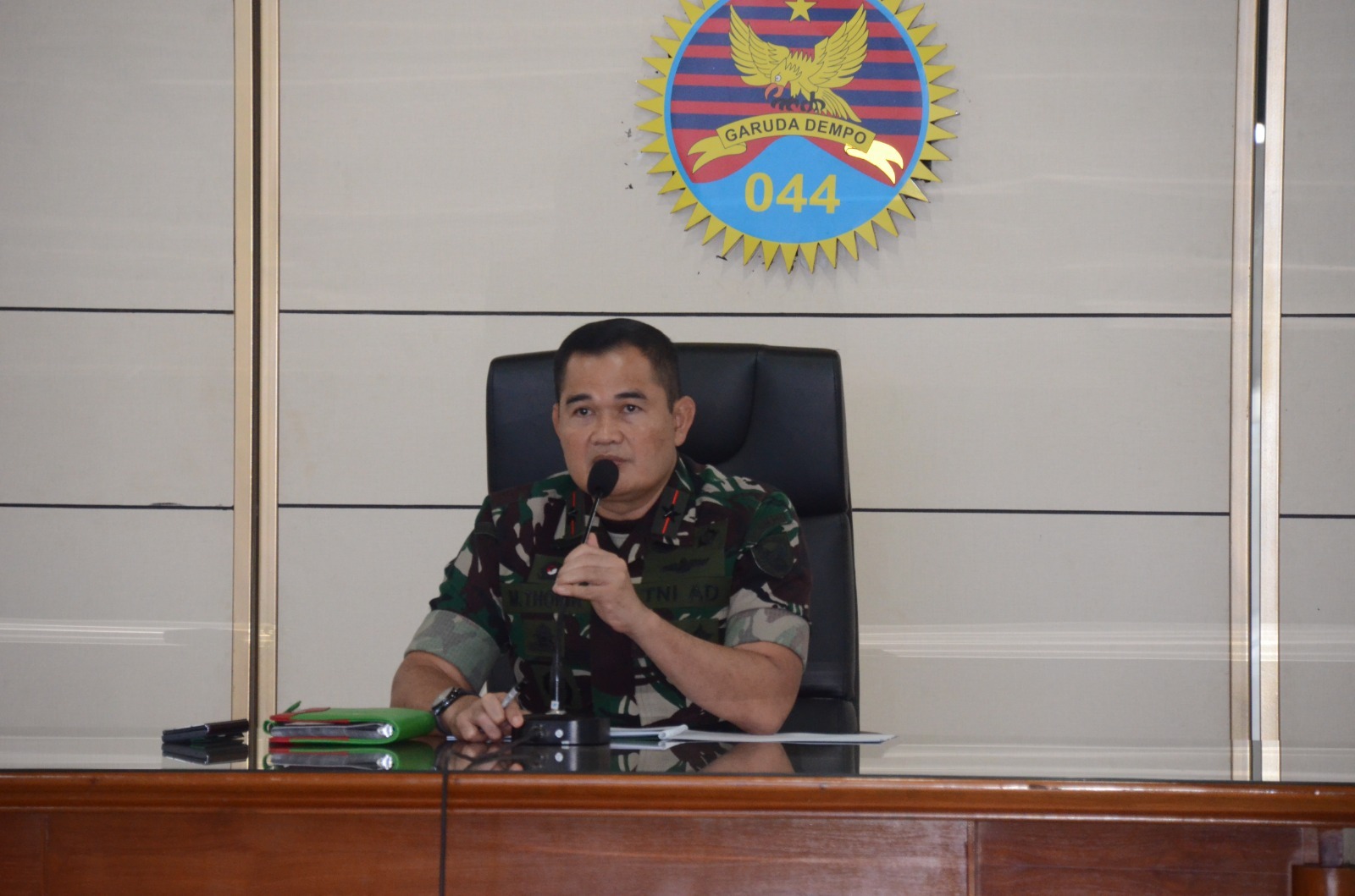 Danrem 044/Gapo Brigjen TNI Muhammad Thohir, S.Sos., M.M memimpin Rapat koordinasi penyambutan Pangdam II/Swj yang baru Mayjen TNI M. Naudi Nurdika, bertempat di Aula Makorem 044/Gapo Jl. Jenderal Sudirman Km. 4 Kota Palembang, Jumat (19/4/2024).
