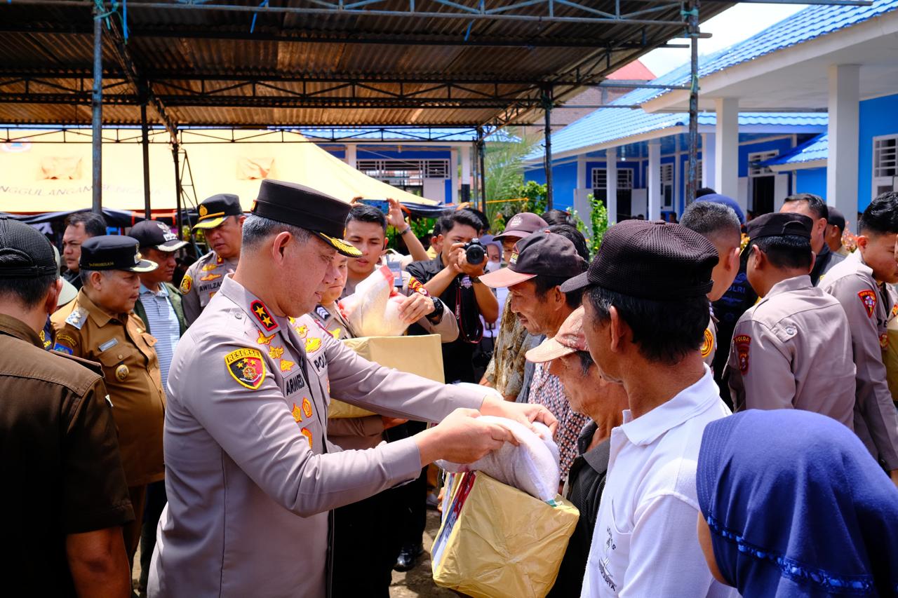 LEBONG -Kompaslink com Sebagai wujud kepedulian terhadap korban banjir di kabupaten Lebong tepatnya di Kecamatan Topos dan Rimbo Pengadang, Selasa (23/04/2024) Kapolda Bengkulu Irjen Pol Drs. H. Armed Wijaya, M.H. tatap muka secara langsung menemui masyarakat yang terdampak langsung bencana banjir. Bertempat di halaman SMPN 17 Lebong, Kapolda Bengkulu yang juga didampingi beberapa pejabat utama memberikan bantuan secara simbolis kepada warga setempat.