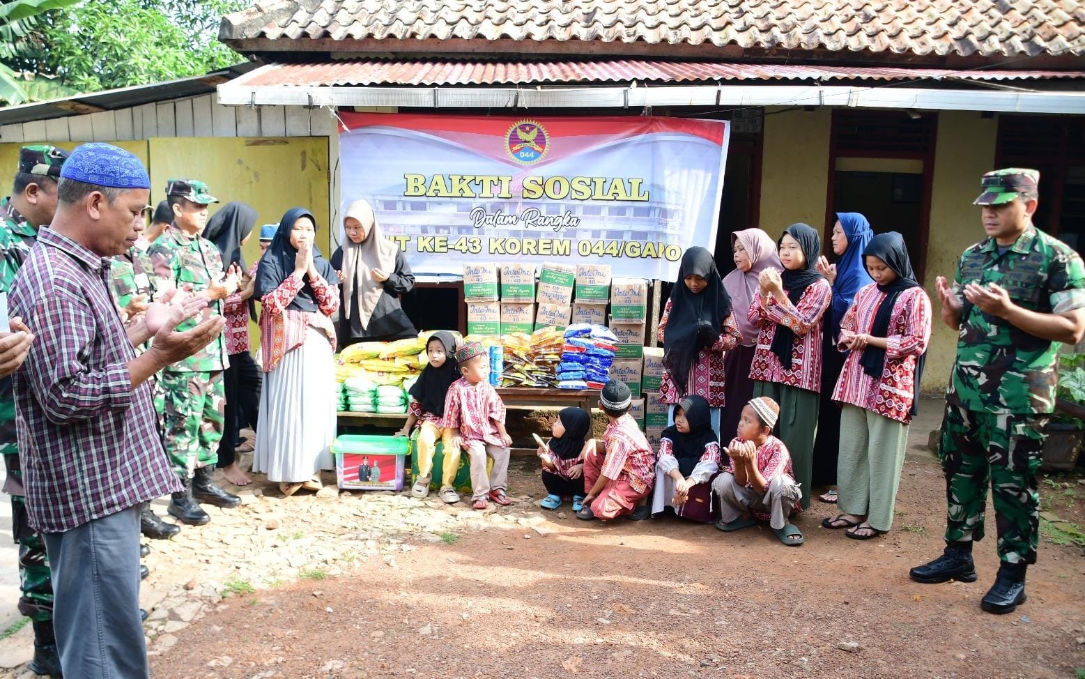 “Bakti Sosial yang kita laksanakan ini merupakan media silaturahmi antara Korem 044/Gapo dengan warga dan anak-anak yatim piatu. Meningkatkan rasa persaudaraan antar sesama, TNI selalu berada di tengah – tengah rakyat,” tambahnya.