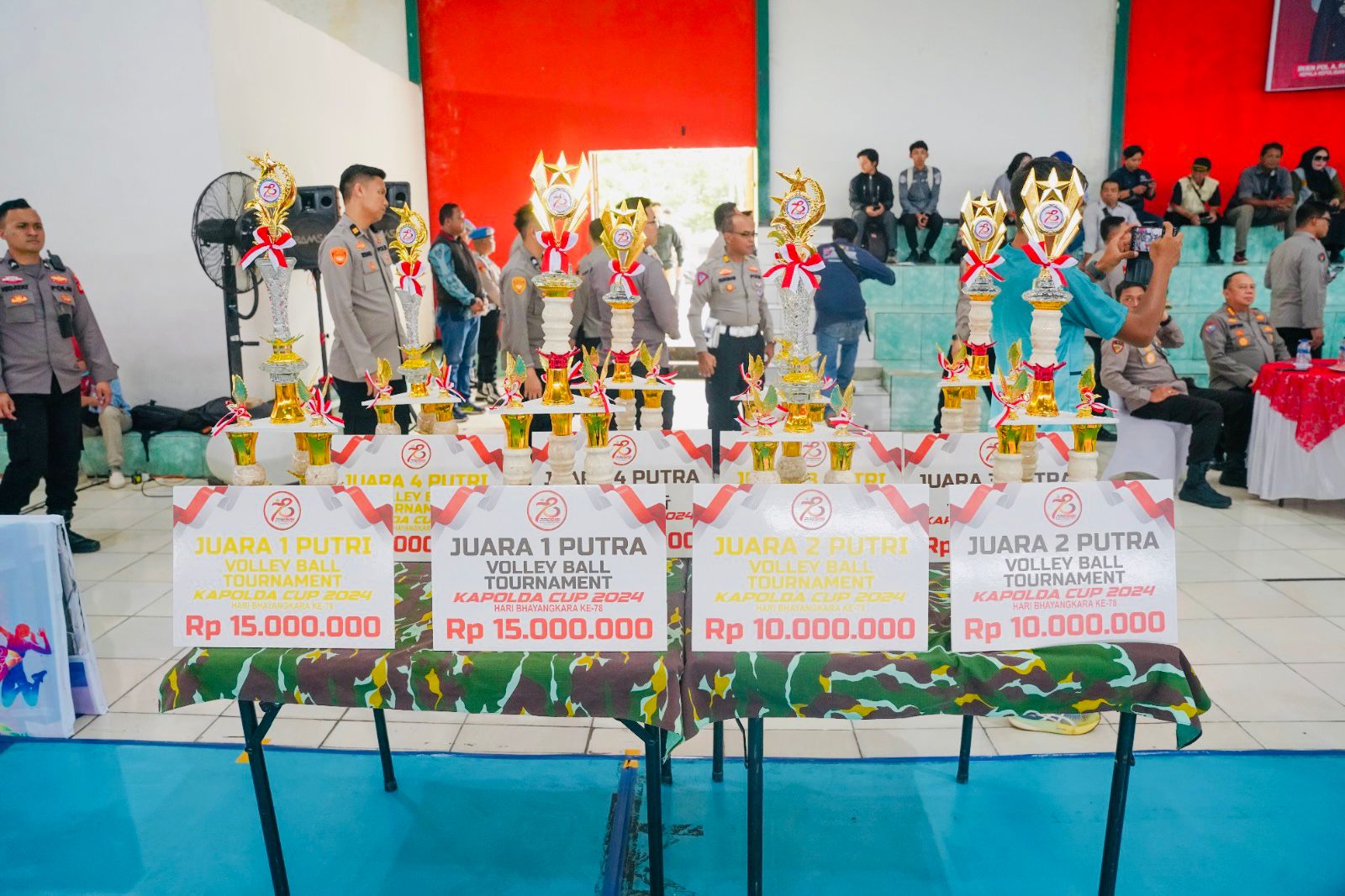 Turut hadir dalam seremoni pembukaa turnamen tersebut Wakapolda Sumsel Brigjen M. Zulkarnain, SIK MSi, Para PJU Polda Sumsel, Kepala BNN Provinsi Sumsel Brigjen Pol. Tri Julianto Djatiutomo, Pangdam II Sriwijaya diwakili Kajasdam II Sriwijaya Kolonel Inf. Debok Sumantokoh, S.H, Kapolrestabes Palembang Kombes Harryo Sugihartono, Perwakilan PBVSI Sumsel Ludi Oliansyah, Sekretaris Umum Koni Sumsel Ir. H. A. Lagam, para wasit dan seluruh peserta kejuaraan turnamen bola voli Kapolda Cup 2024. Pungkasnya,