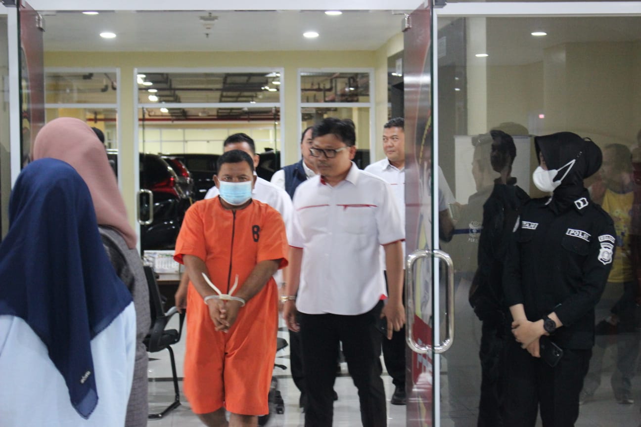 Tersangka di tangkap polisi di tempat pelariannya di Prabumulih kabupaten Muara Enim dua belas hari pasca kejadian
