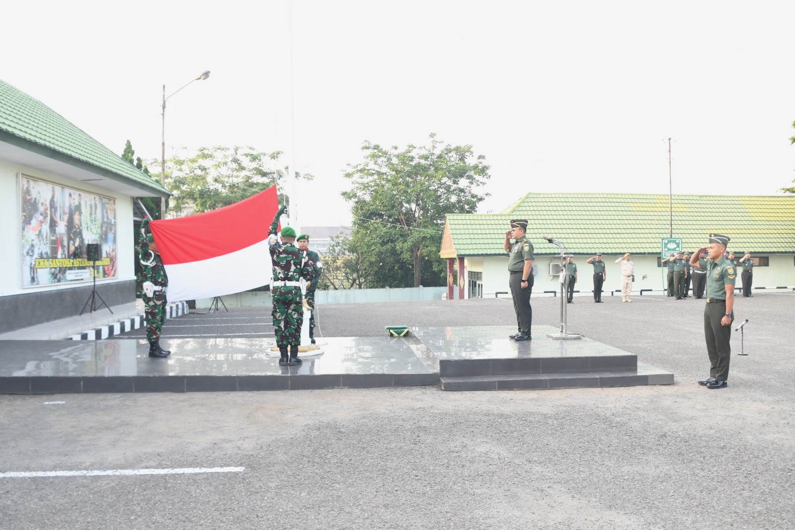 Selaku inspektur upacara Kasi Intel Kasrem 044/Gapo Kolonel Inf M. Arief Gumelar memimpin jalannya Upacara Bendera 17 Juli 2024, bertempat di Lapangan Apel Korem 044/Gapo Jl. Jenderal Sudirman Km. 4,5 Kota Palembang, Rabu (17/7/2024).