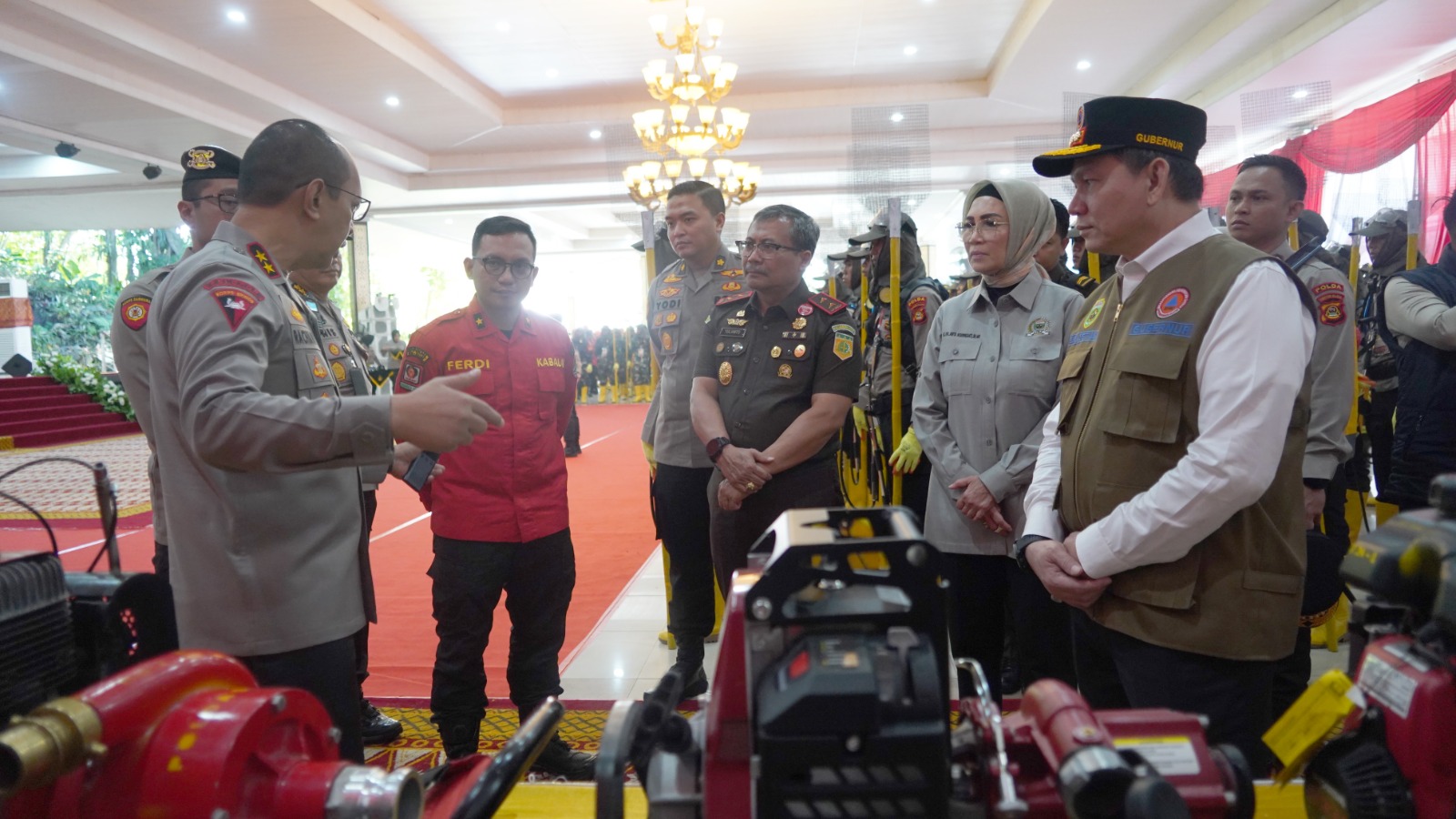 Kapolda Sumsel Irjen Pol A.Rachmad Wibowo SIK dampingi PJ . Gubernur Sumsel Elen Setiadi pada pembukaan pelatihan pencegahan Karhutla Polda tahun 2024 yang bertempat diaula Griya Agung Palembang Kamis 25 Juli 2024 Pagi