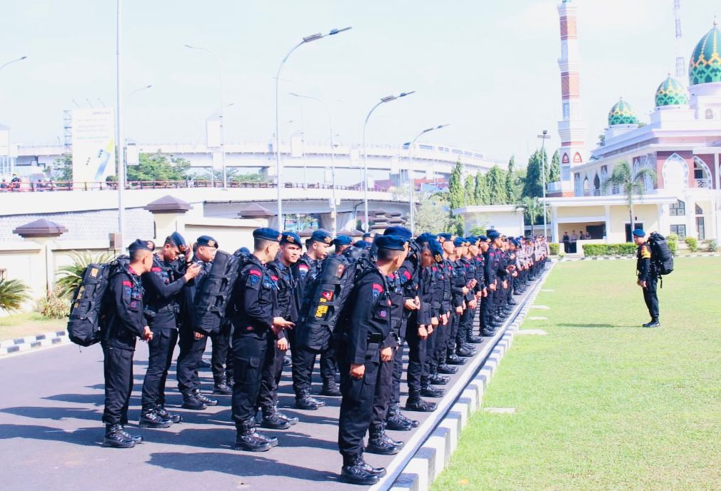 Kapolda Sumsel Irjen A Rachmad Wibowo Jumat (2/8/2024) melepas keberangkatan 170 personel Brimob, Sabhara dan Polair kedaerah rawan karhutla diprovinsi Sumatera Selatan yaitu di kabupaten Ogan Ilir, kabupaten Ogan Komering Ilir, kabupaten Banyuasin dan kabupaten Musi Banyuasin.
