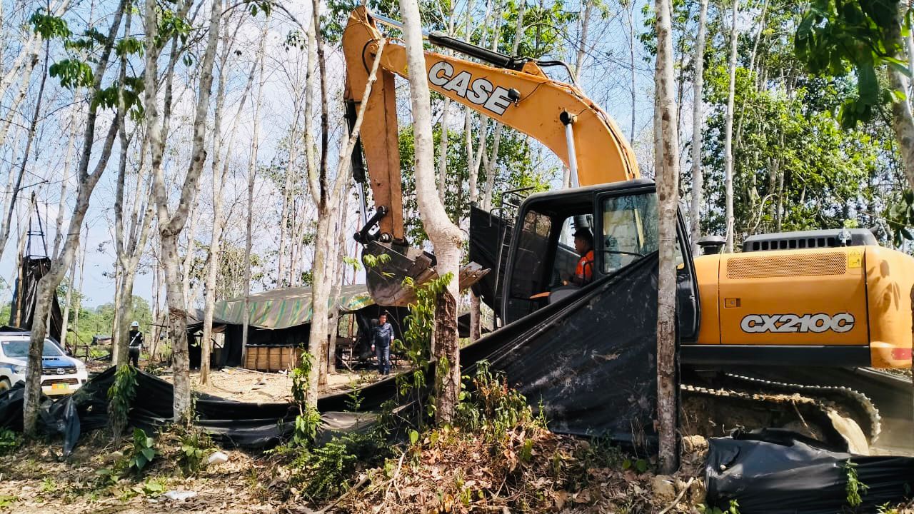 Tim juga mengerahkan alat berat berupa excavator untuk membongkar sejumlah titik sumur minyak ilegal yang ada.