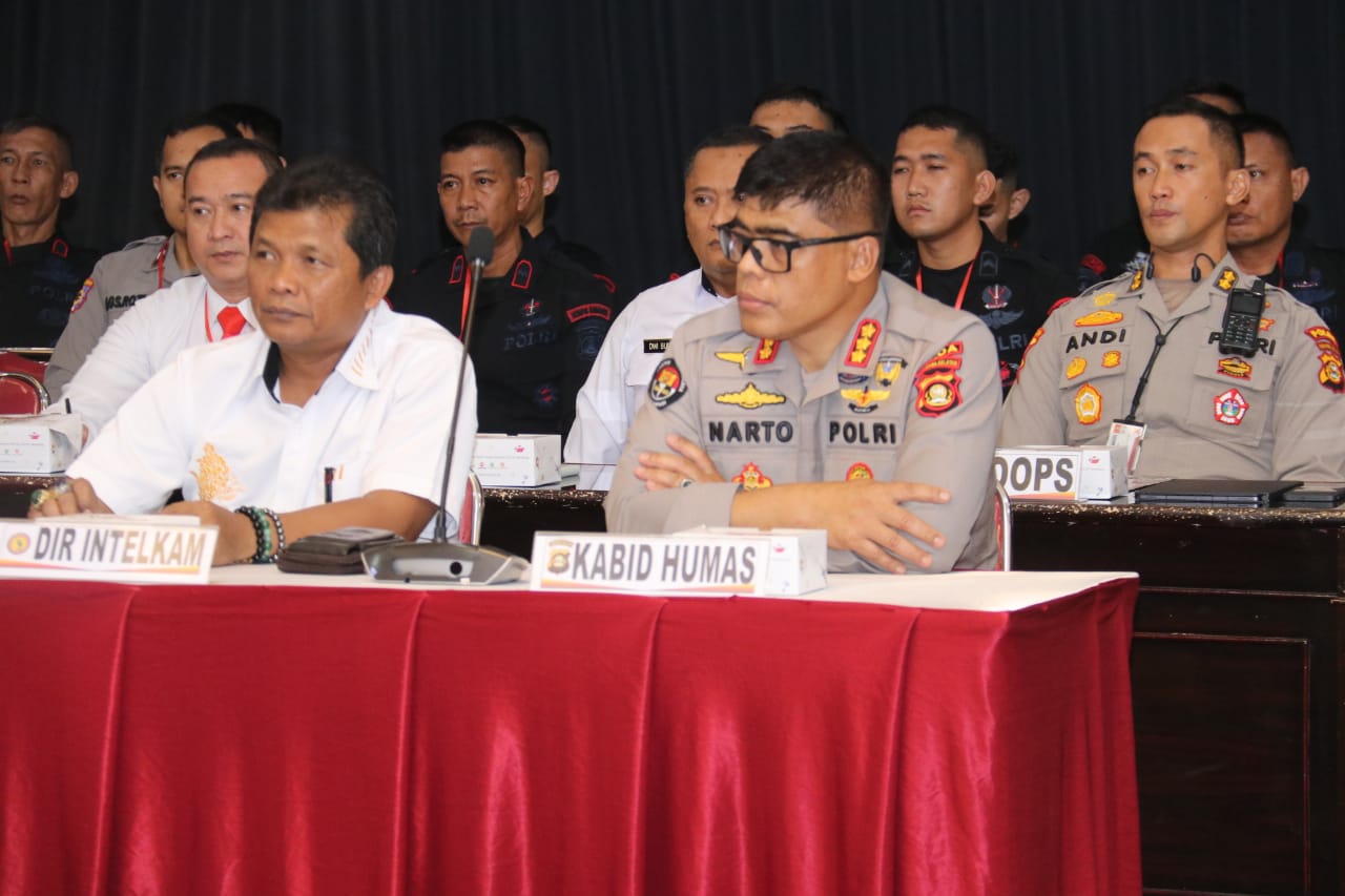Kegiatan ini juga dihadiri secara virtual oleh Karoops Polda Sumsel Kombes Pol. M. Anis Prasetio Santoso, S.I.K., M.Si., dan Dansatbrimob Polda Sumsel Kombes Pol. Susnadi, S.I.K., dari Polres Muara Enim. Selain itu, para Kapolres/Tabes serta peserta Latpraops dari berbagai satuan tugas operasi turut bergabung melalui saluran virtual.