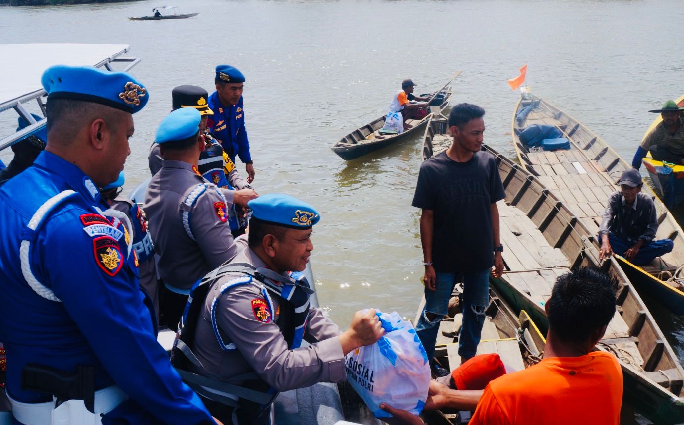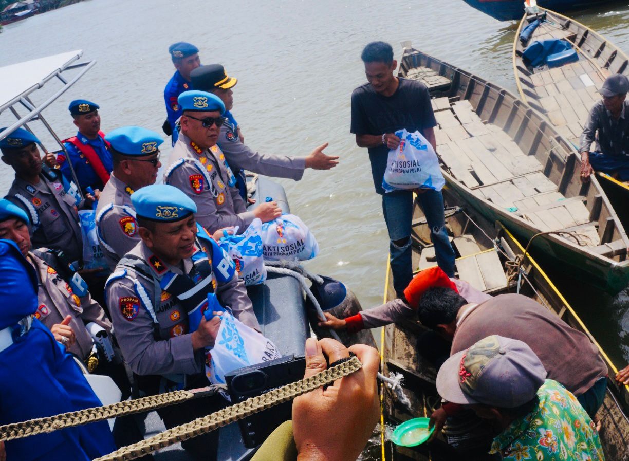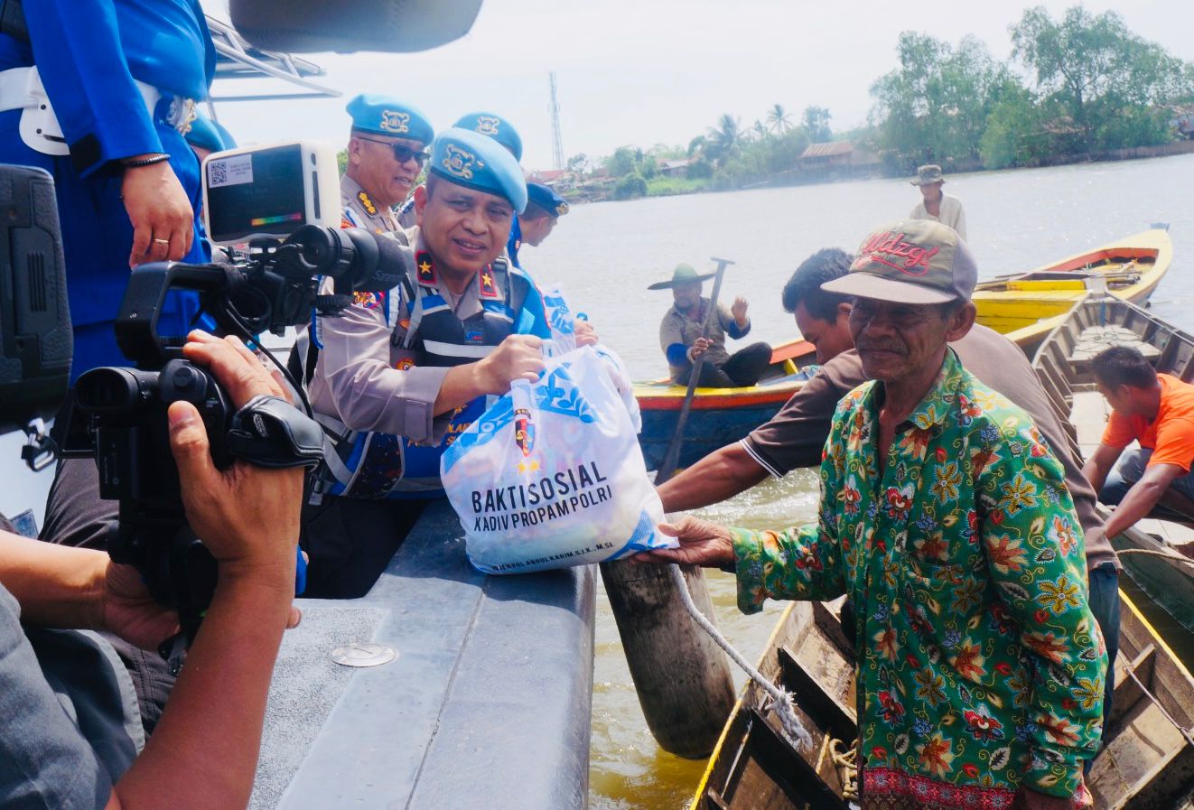 Dengan Kapal Ditpolairud, Karo Provoost Div Propam Polri Susuri Sungai Musi Berbagi Sembako ke Nelayan dan Masyarakat