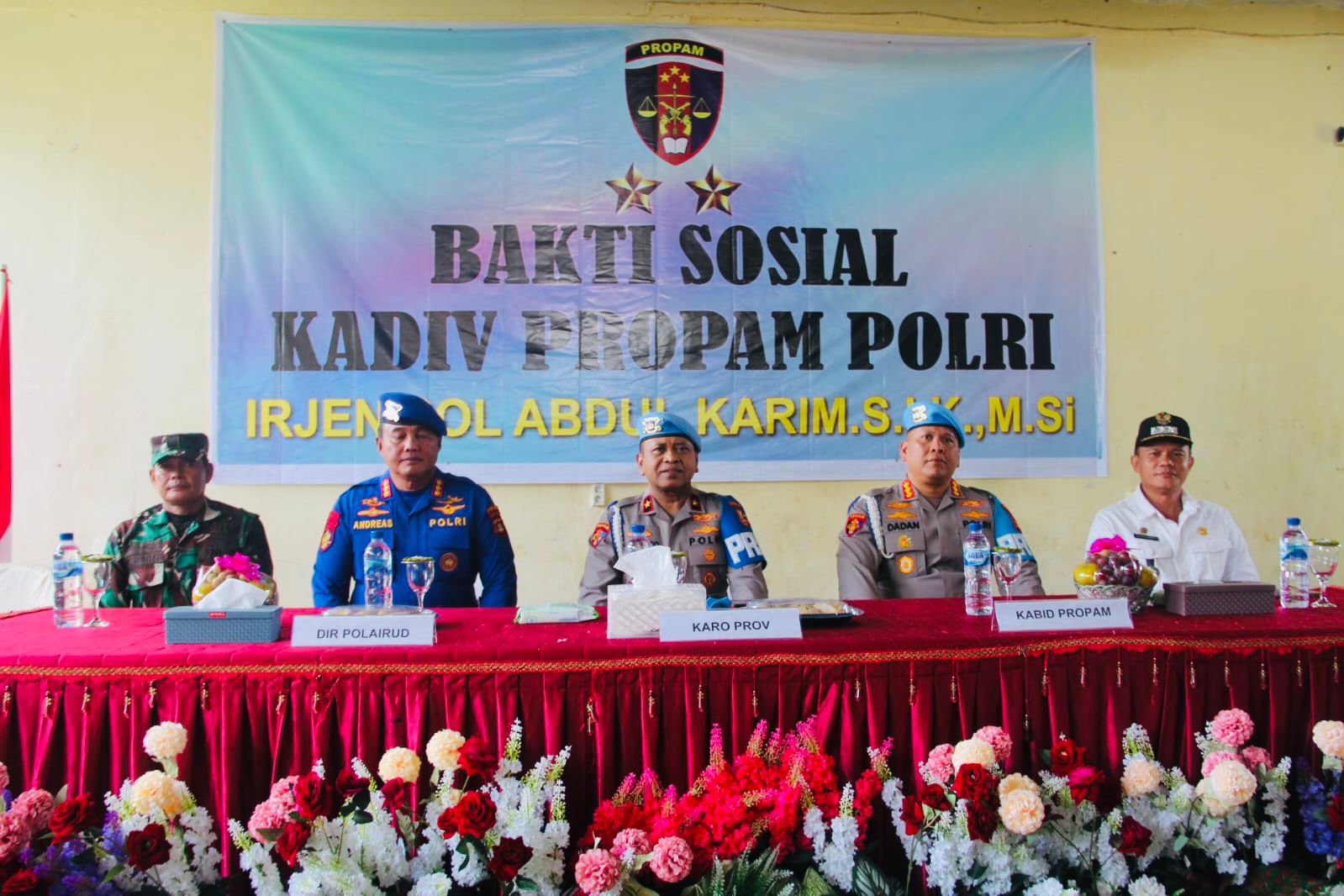 “Bapak Kadiv Propam Polri Irjen Abdul Karim telah memberikan bekal untuk kami berikan kepada masyarakat disini berupa sembako ini sebagai bentuk kepedulian Polri, juga sebagai sarana silaturahmi. Semoga dapat membantu meringankan masyarakat kita,” ujarnya.