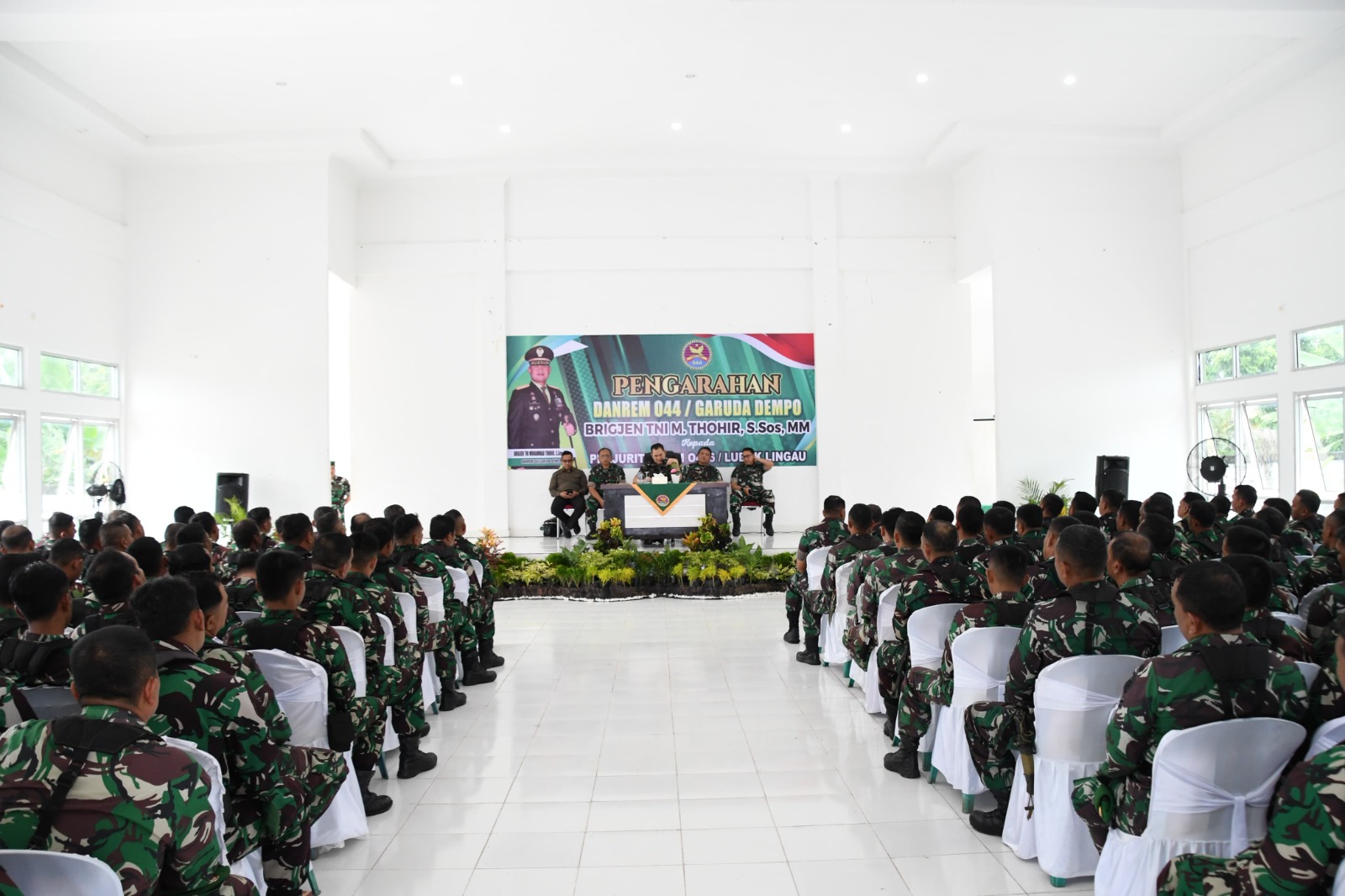 Lubuk Linggau –kompaslink.com| Danrem 044/Gapo Brigjen TNI Muhammad Thohir, S.Sos., M.M berikan pengarahan pada Jam Danrem 044/Gapo kepada Prajurit dan PNS Kodim 0406/Lubuk Linggau, bertempat di Aula Abdurahman Koramil 406-01/Linggau Timur Kota Lubuk Linggau, Rabu (25/9/2024).