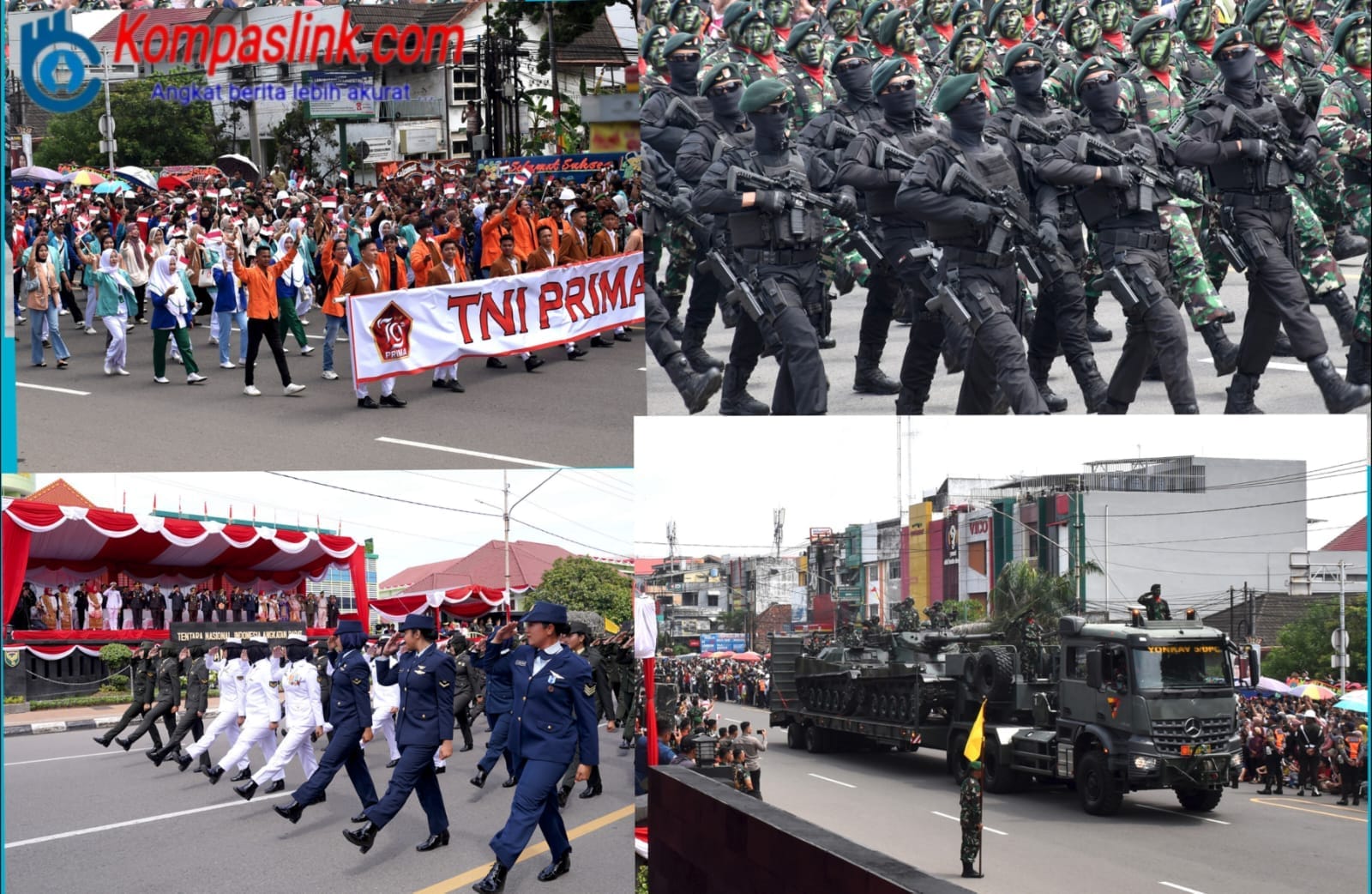 Terlihat ratusan pasukan dalam defile tersebut berbaris dengan rapih, seperti pasukan dari berbagai Satuan TNI di wilayah Kodam II/Swj, spt kelompok drum band dari Ajendam II/Swj, kelompok