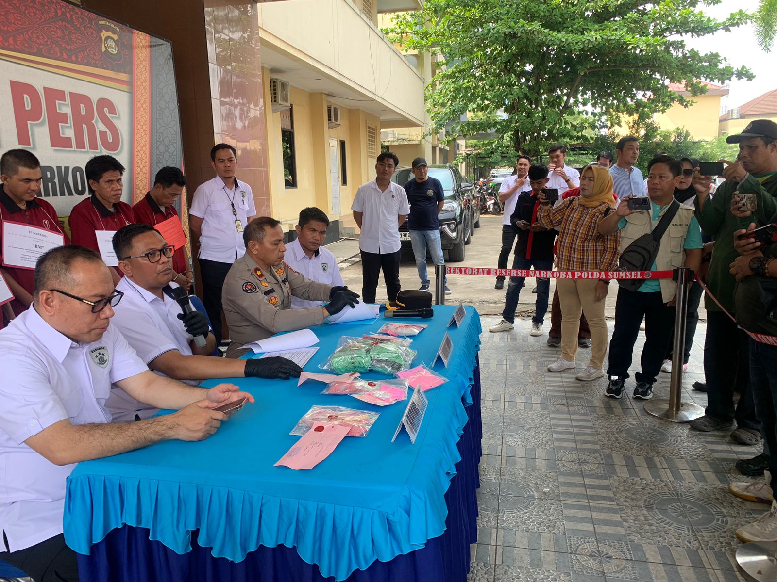 Wakil Direktur Reserse Narkoba Polda Sumsel AKBP Harissandi didampingi Plt Kasubbid Penmas Kompol Menang,SH mengatakan Budi ditangkap disalah satu hotel di Jalan Dempo Luar kawasan Ilir Timur I Palembang.