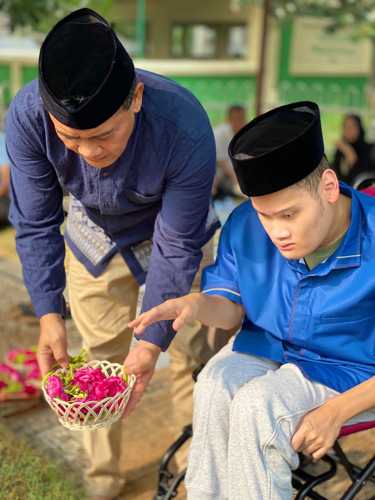 Sesampainya di lokasi, mereka langsung memanjatkan doa dan membaca surat Yasin. Luthfi terlihat sangat khusyuk membaca surat Yasin tersebut sambil sesekali melihat anaknya yang duduk di kursi roda.