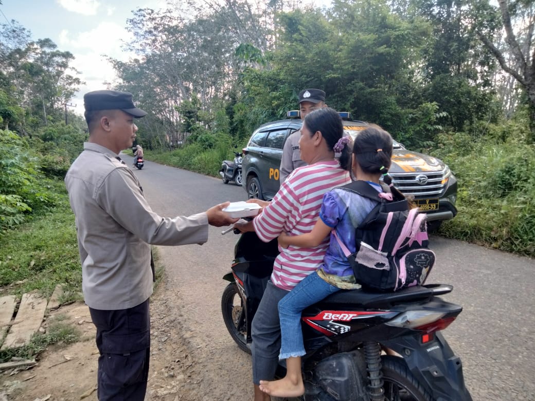 Jum’at Berkah,Ps Kanit Binmas Polsek Rambang dan Bhabinkamtibmas Bagikan Nasi Kotak ke Masyarakat Desa dan Pengguna Jalan