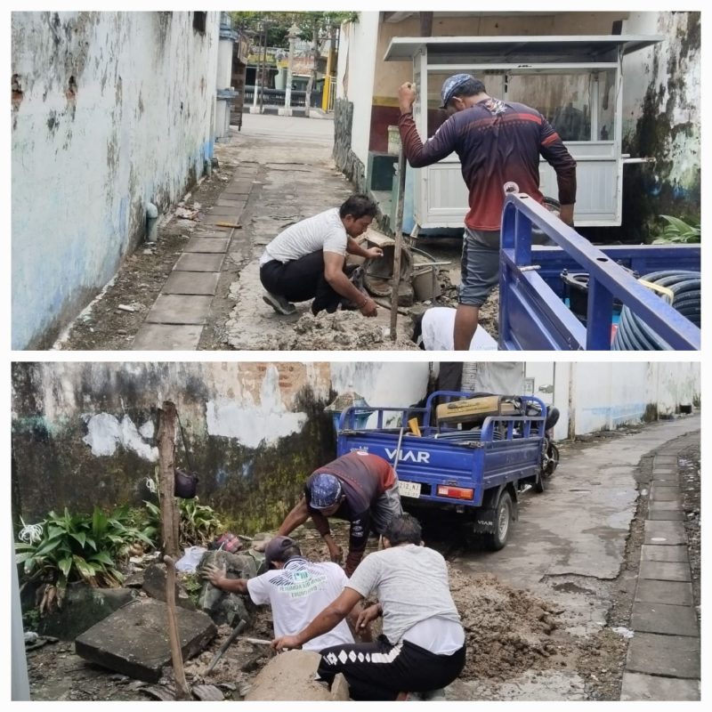 Perbaikan pipa milik Perusahaan Daerah Air Minum (PERUMDAM) Trunojoyo yang mengalami kebocoran hingga menyebabkan  air bersih tidak sampai ke pelanggan, Pada Jumat (30/5/2025).