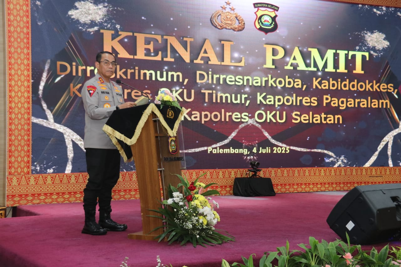 Dalam acara tersebut, dilakukan prosesi kenal pamit untuk Dirreskrimum, Dirresnarkoba, Kabid Dokkes, Kapolres OKU Timur, OKU Selatan, dan Pagaralam. Sejumlah pejabat lama dilepas dengan penuh penghargaan, sementara para pejabat baru disambut dengan harapan besar untuk melanjutkan estafet kepemimpinan.