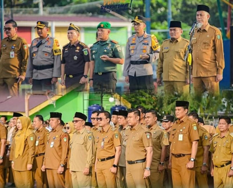 Apel yang dipusatkan di Lapangan Taman Bukit Gelanggang (TBG) itu berlangsung dengan khidmat, diikuti ratusan peserta apel yang terdiri dari unsur ASN, TNI dan Polri.