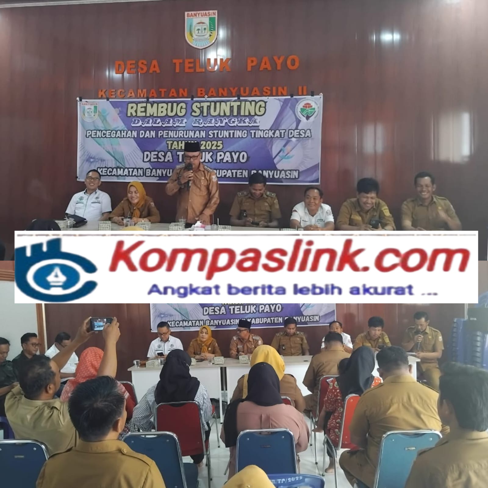 Bertempat di Aula kantor Desa Teluk Payo Kecamatan Banyuasin, Senin, (15/9/2025), Pemerintah Desa Teluk Payo melaksanakan Kegiatan Rembug Stunting tingkat Desa Dalam Rangka pencegahan dan penurunan Stunting tahun 2025 serta Penyusunan Dokumen RKPDes Tahun 2026 mendatang.