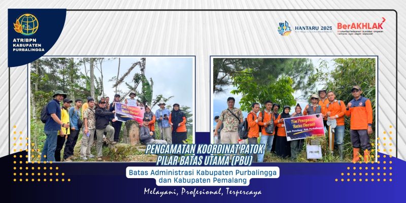 Kantor Pertanahan Kabupaten Purbalingga bersama Sekretariat Daerah Kabupaten Purbalingga melaksanakan kegiatan Pengamatan Koordinat Patok Pilar Batas Utama (PBU) dalam rangka penegasan Batas Administrasi antara Kabupaten Purbalingga dan Kabupaten Pemalang pada Kamis, 23 Oktober 2025.