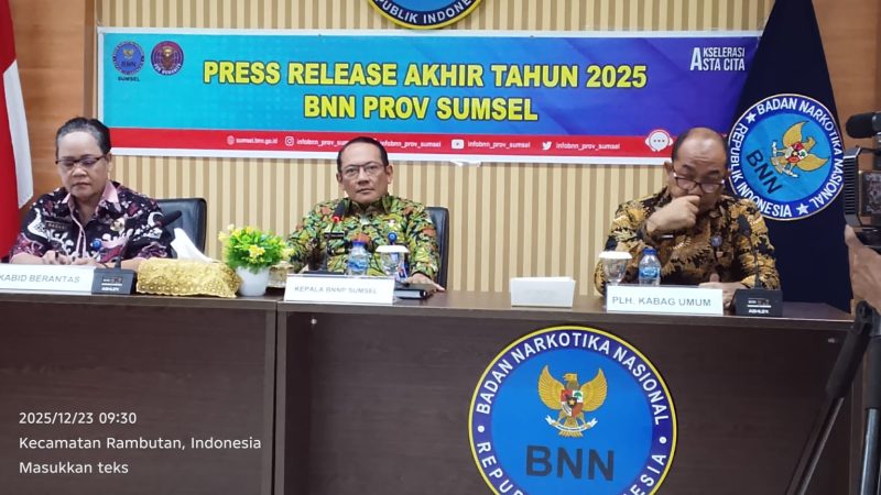 Hal tersebut disampaikan Kepala BNNP Sumsel Brigjen Pol Hisar Siallagan, SIK saat rilis pencapaian kinerja akhir tahun 2025, Selasa (23/12/2025) siang, di Kantor BNNP Sumsel, Palembang.