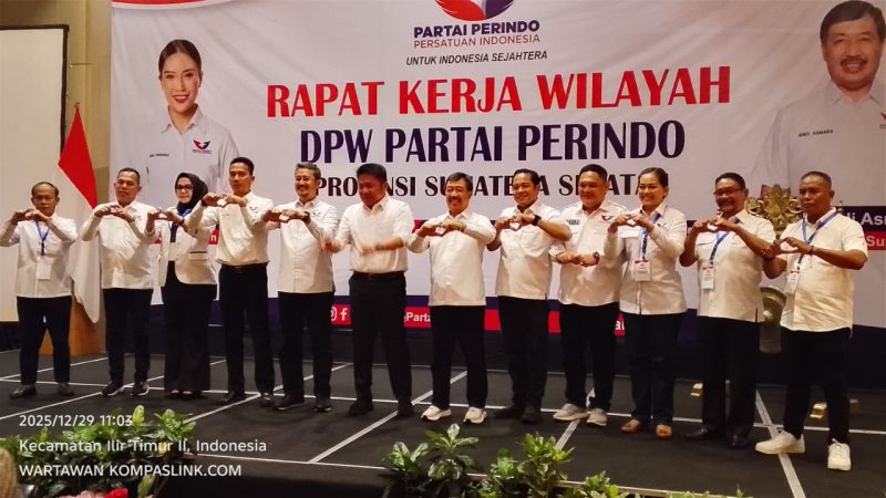 Dewan Pimpinan Wilayah (DPW) Partai Perindo Provinsi Sumatera Selatan menggelar Rapat Kerja Wilayah (Rakerwil) di Novotel Hotel Palembang, Minggu–Senin (28–29/12/2025). Kegiatan ini dihadiri langsung oleh Gubernur Sumatera Selatan H. Herman Deru dan disambut Ketua DPW Partai Perindo Sumsel Ir. H. Andi Asmara.
