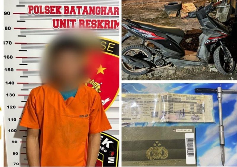 Dari hasil pemeriksaan, tersangka mengakui telah melakukan pencurian sepeda motor milik korban. Polisi juga mengamankan sejumlah barang bukti berupa satu unit sepeda motor Honda Beat BG 4571 BAO, satu buah BPKB, satu lembar STNK, satu buah kunci motor, serta satu buah kunci T yang diduga digunakan pelaku saat beraksi.