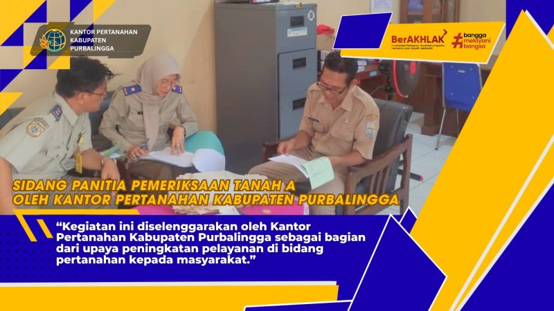Pada hari Selasa, 07 April 2026, telah dilaksanakan kegiatan Sidang Panitia Pemeriksaan Tanah A yang bertempat di Kantor Kelurahan Wirasana. Kegiatan ini diselenggarakan oleh Kantor Pertanahan Kabupaten Purbalingga sebagai bagian dari upaya peningkatan pelayanan di bidang pertanahan kepada masyarakat.