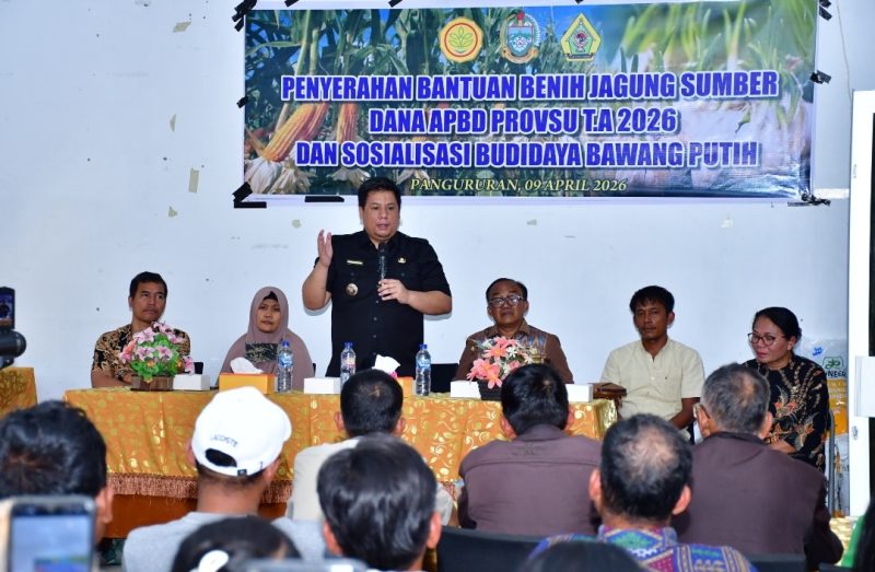 Pemerintah Kabupaten Samosir menyalurkan bantuan benih jagung untuk lahan seluas 50 hektare kepada petani di Kecamatan Palipi dan Nainggolan. Bantuan yang bersumber dari APBD Provinsi Sumatera Utara Tahun Anggaran 2026 tersebut diserahkan langsung Bupati Samosir, Vandiko Timotius Gultom bersama Wakil Bupati Ariston Tua Sidauruk di Aula Dinas Ketahanan Pangan, Pertanian dan Perikanan, 09/4/2026.