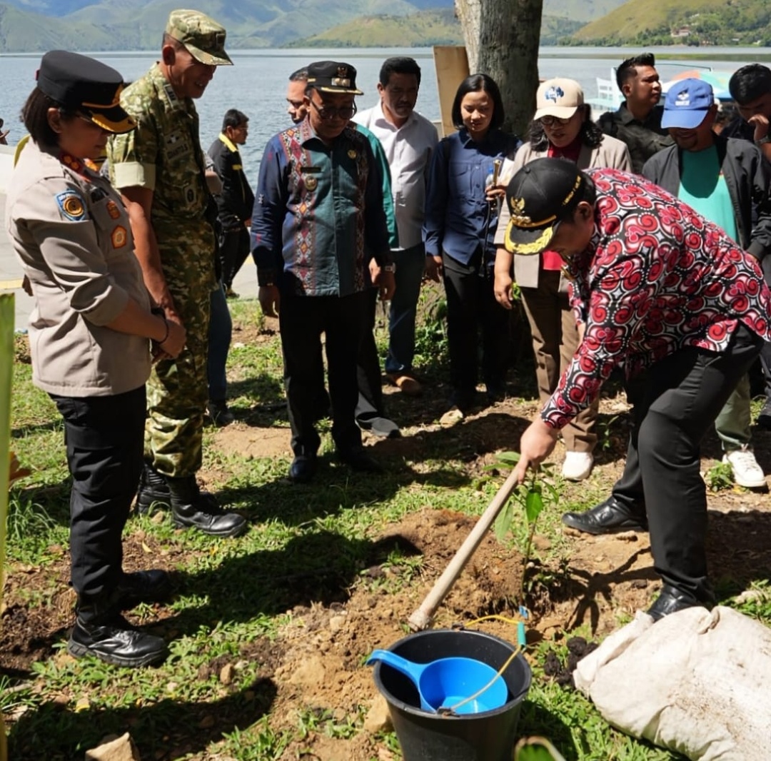 Pemerintah Kabupaten Samosir bersama Yayasan Pusuk Buhit melakukan aksi nyata pelestarian lingkungan dengan menebar 1.000 bibit ikan di Danau Toba serta menanam 1.000 pohon di kawasan Waterfront City (WFC) Pangururan dan Pusuk Buhit, Jumat (10/4/2026).