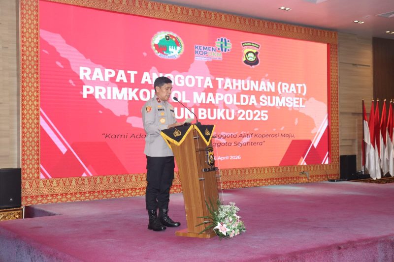 M.T.C.P membuka Rapat anggota Tahunan (RAT) Ke- 5 Primkoppol Mapolda Sumsel tahun buku 2025 bertempat di auditorium lantai 7 Gedung Presisi Mapolda Sumsel Kamis 16/04/2026