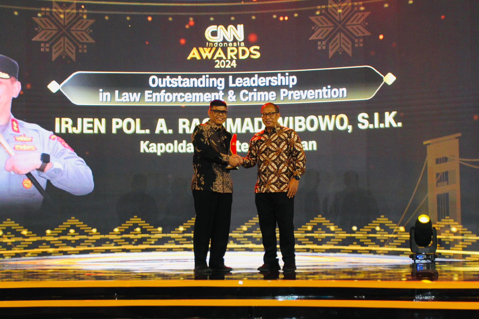 PALEMBANG -kompaslink.com| Kapolda Sumsel Irjen A Rachmad Wibowo meraih penghargaan khusus ‘Outstanding Leadersehip in Law Enforcement and Crime Prevention’ dalam ajang penghargaan CNN Indonesia…