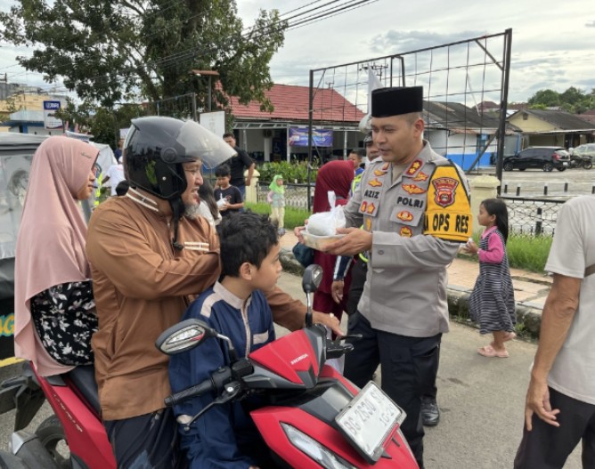 Empat Lawang,-kompaslink.com| Kapolres Empat Lawang AKBP ABDUL AZIZ SEPTIADI, S.H., S.I.K., M.H. Bersama Ketua Bhayangkari Cabang Empat Lawang Ny. Dian Aziz membagikan Takjil…