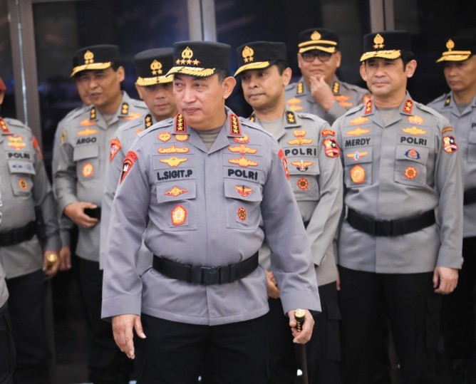 Jakarta -kompaslink.com| Kapolri Jenderal Listyo Sigit Prabowo memimpin upacara korps raport kenaikan pangkat 4 perwira tinggi (pati) dan perwira menengh (pamen) Polri di Rupattama…