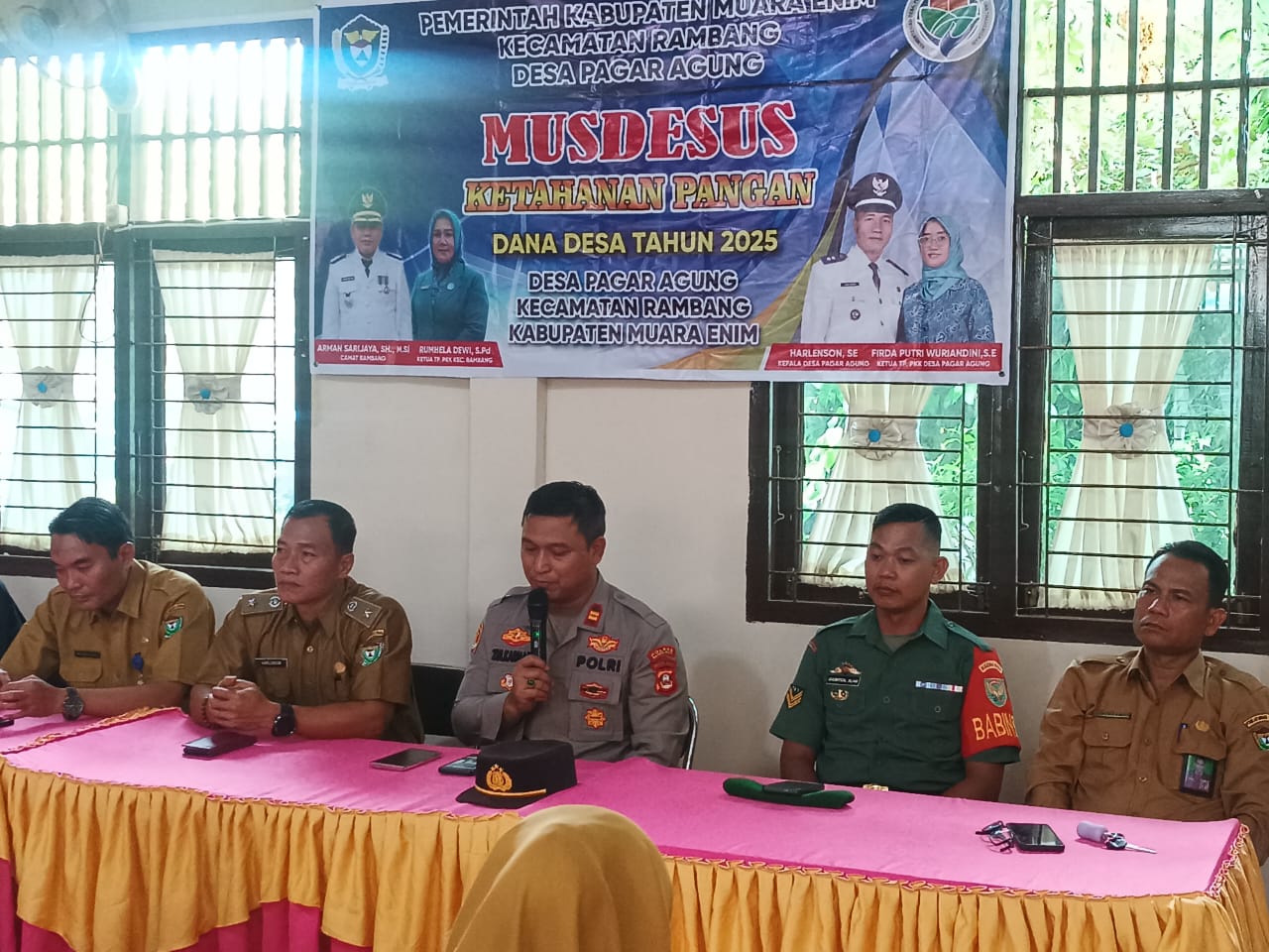 MUARA ENIM – kompaslink.com| Kapolsek Rambang IPTU Zulkarnain Afianata, ST, M.Si, MH menghadiri Musyawarah Desa Khusus (Musdesus) yang membahas program ketahanan pangan Dana Desa…