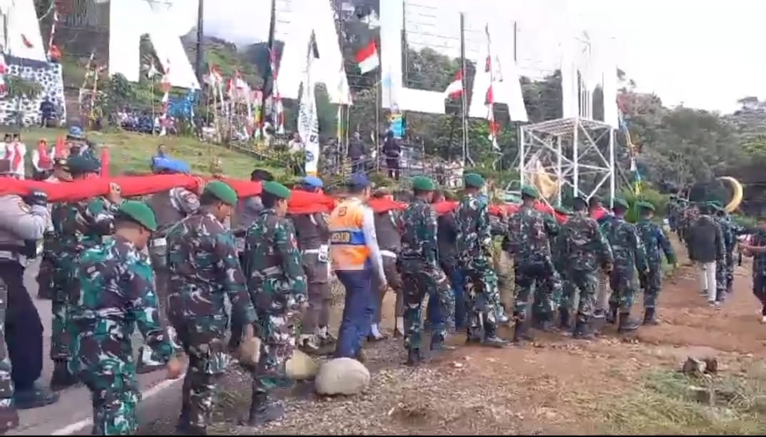 Pagar alam-Kompaslink.com| Kodim 0405/Lahat Bersama Forkopimda Prov. Sumsel dan Pemkot serta Masyarakat Pagar Alam bersatu membentangkan Bendera Merah Putih Raksasa ukuran 20 meter ×30…