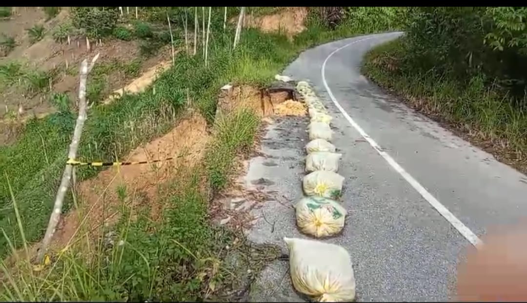 KABUPATEN TOBA (SUMUT) KOMPASLINK.com_Jalinsum HABORNAS (Habinsaran Borbor Nassau). Di desa pagar gunung kecamatan Nassau Kabupaten Toba Sumut, terancam putus, Selasa 16.juli 2024. kunjungan…