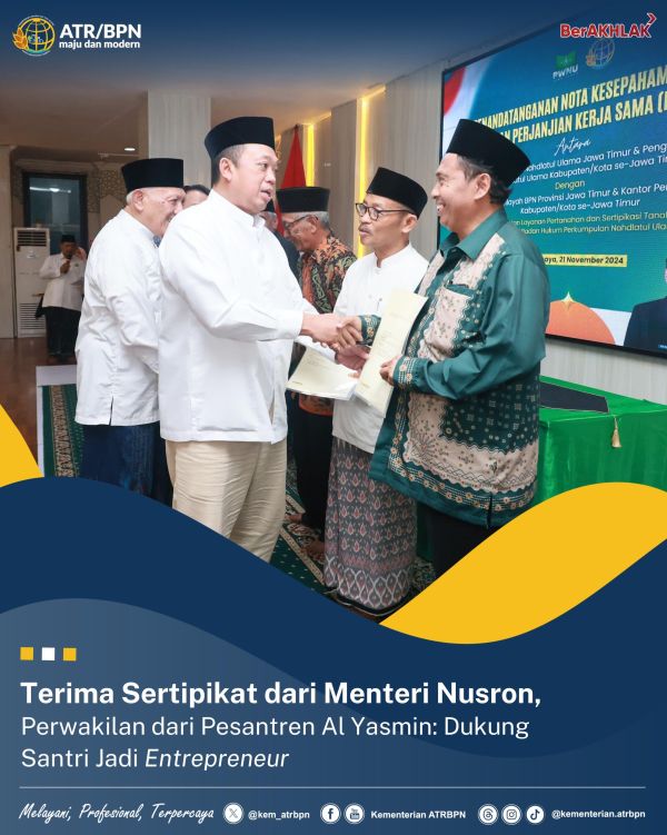 Surabaya – Percepatan sertipikasi tanah wakaf yang dilakukan Kementerian Agraria dan Tata Ruang/Badan Pertanahan Nasional (ATR/BPN) menuai apresiasi dari Ketua Pengurus Wilayah Nahdlatul Ulama…